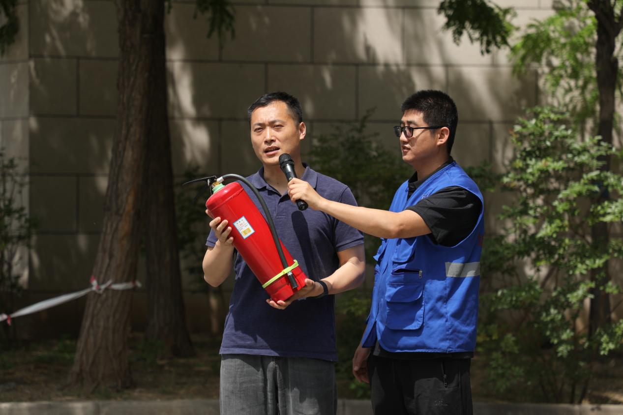 下午的实战演练环节将活动推向高潮。活动特别邀请到国家注册安全工程师、中国职业安全健康协会安全标准化评审组专家、全国教育系统安全检查组成员赵雨霄副研究员亲临现场进行指导。在危化品泄漏应急处置演练中,他现场指导员工模拟真实情况下的全流程处置,整个过程分工明确、衔接紧密,充分展现了规范高效的应急处置办法。随后的消防技能演练中,保卫处张琪老师现场示范讲解灭火器、灭火毯等器材的规范使用方法,参训师生分组进行灭火实操演练。