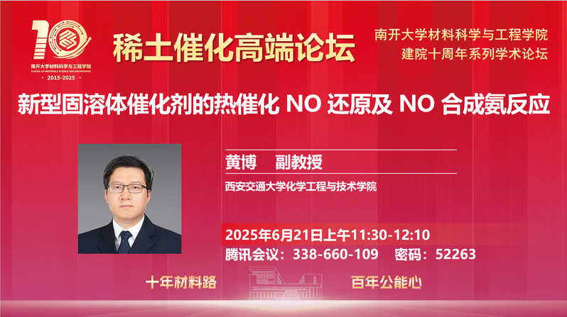 报告人简介:黄博,西安交通大学,副教授。博士毕业于京都大学(2017),2018年入选陕西省青年千人,2019年全职回国担任西安交通大学副教授。专注于难混溶体系中固溶体合金的合成,共同建立了合金的普适合成方法—共还原和慢合成方法。截止目前共开发了十余个全新难混溶合金体系,并作为催化剂应用于三元催化、NO还原和NO合成氨等反应。