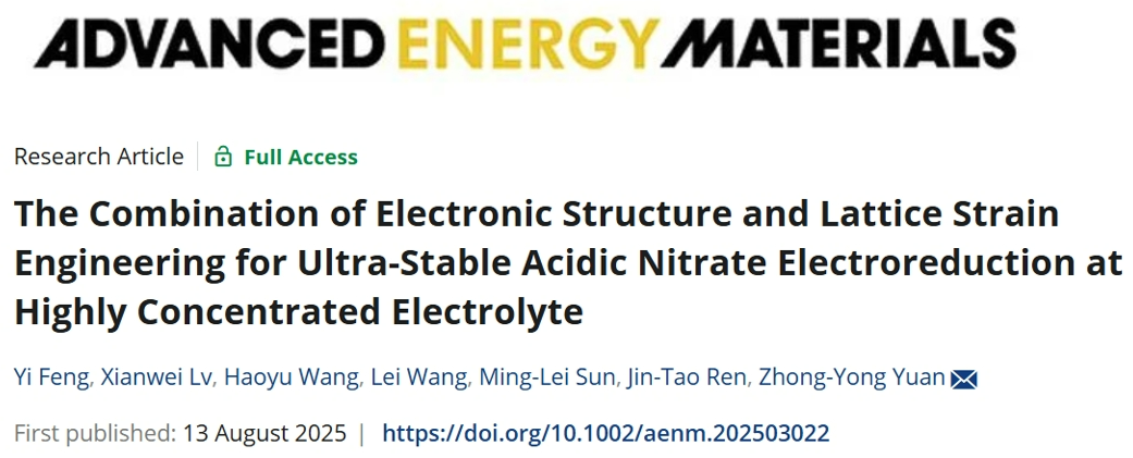 题目:The Combination of Electronic Structure and Lattice Strain Engineering for Ultra-Stable Acidic Nitrate Electroreduction at Highly Concentrated Electrolyte