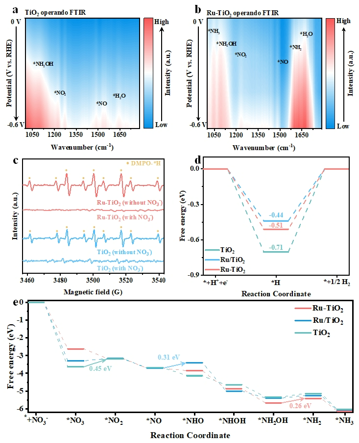 1. 杂原子掺杂后电子结构优化和晶格应变产生了协同作用,改善了含氮中间体的吸附行为,从而降低了决速步骤的能量势垒。