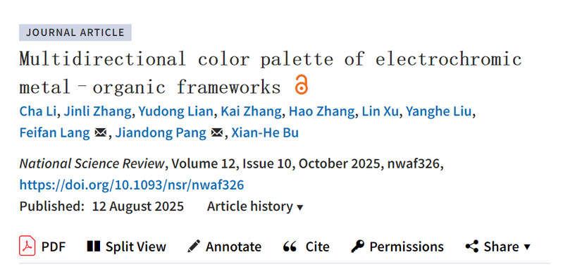 题目:Multidirectional color palette of electrochromic metal–organic frameworks