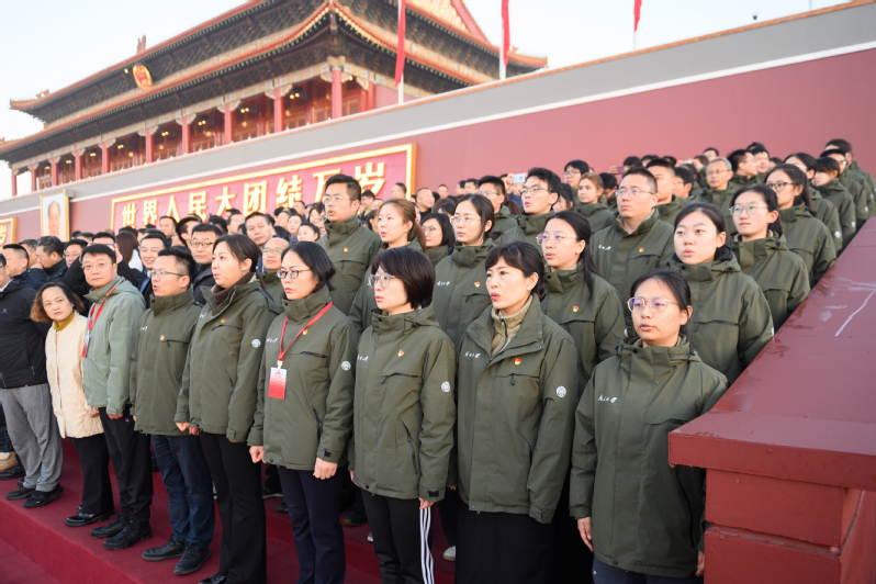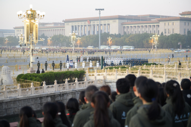 111日清晨,南开师生共同登上天安门城楼观礼台,参加庄严的升国旗仪式。伴随着日出东方,国旗护卫队员们迈着矫健铿锵的步伐,护卫着鲜艳的五星红旗入场。雄壮的国歌奏响,国旗缓缓升起,迎风飘展;全体人员凝神静气,注目行礼。1971111日,五星红旗第一次在联合国总部升起,充分展现了冉冉升起的大国实力。五十四年后的今天,师生们站在天安门上,深切感受着祖国的繁荣富强,励志要领悟好、传承好、践行好爱国主义精神之“魂”。