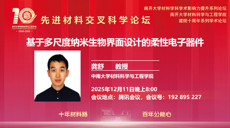 报告人简介:龚舒,博士,中南大学betway西汉姆联官网教授,国家级青年人才,2011年本科毕业于中南大学betway西汉姆联官网;2017年于澳大利亚莫纳什大学获博士学位,师从程文龙教授;随后于2017年至2024年在该校同一课题组从事博士后研究工作,2024年全职加入中南大学材料学院,研究方向聚焦于柔性电子材料与器件,主要涵盖柔性可穿戴机械传感器、生物传感器、电化学器件及柔性供能器件等。其研究工作致力于通过开发表皮式柔性传感系统,实现对细胞、类器官乃至人体的实时、连续与无线监测。迄今已在相关领域发表SCI学术论文70余篇,其中以第一或通讯作者在 Nature Nanotechnology、Nature Communications、Advanced Materials、ACS Nano、Chemical Reviews、Chemical Society Reviews 等国际权威期刊发表多篇代表性论文。论文总引用次数逾9000次,H指数为41。