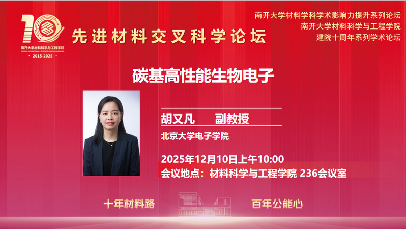 报告人简介:胡又凡,北京大学电子学经理聘副教授,主要研究领域为柔性电子器件与系统集成,研究内容包括高性能传感器、柔性碳基集成电路和系统。共发表SCI论文80余篇,包括 Nature Electronics, Nature Communications,Science Advance等。SCI引用12000余次,h因子为49, 共有10余篇论文入选Thomson ESI 物理领域和材料科学领域的高引用论文( ESI Highly Cited Papers (top1%)),2019年-2025年连续7年入选全球前2%顶尖科学家。目前担任IEEE Transactions on Nanotechnology副编辑和Frontiers in Nanotechnology 专业总编辑。