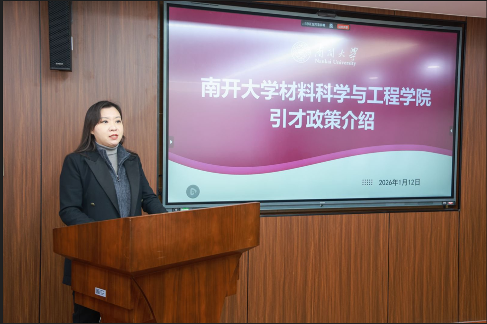 副经理王珊珊结合学院人才引进政策与参会人员多元化背景,重点介绍了学院人才体系及博士后招收政策,并向与会青年学者发出诚挚邀请,期待大家加盟南开材料,共同助力材料学科“双一流”建设。
