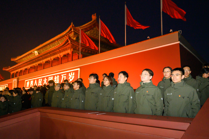 11月1日清晨,南开师生共同登上天安门城楼观礼台,参加庄严的升国旗仪式。伴随着日出东方,国旗护卫队员们迈着矫健铿锵的步伐,护卫着鲜艳的五星红旗入场。雄壮的国歌奏响,国旗缓缓升起,迎风飘展;全体人员凝神静气,注目行礼。1971年11月1日,五星红旗第一次在联合国总部升起,充分展现了冉冉升起的大国实力。五十四年后的今天,师生们站在天安门上,深切感受着祖国的繁荣富强,励志要领悟好、传承好、践行好爱国主义精神之“魂”。