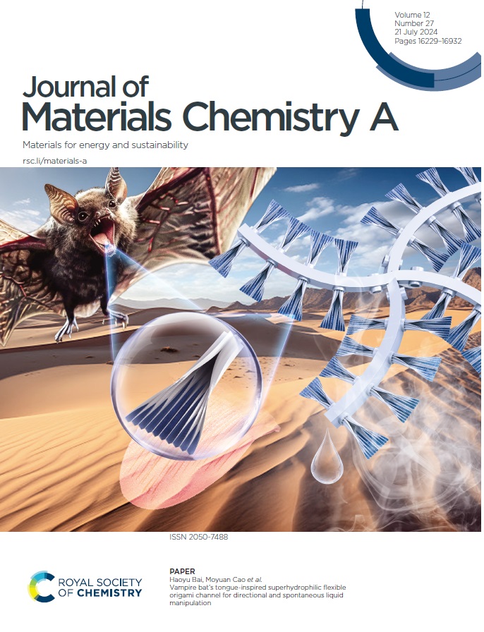 18. Vampire bat's tongue-inspired superhydrophilic flexible origami channel for directional and spontaneous liquid manipulation; Zhihang Ye#, Jingyi Zhao#, Qianrui Tong, Xinsheng Wang, He Sun, Haoyu Bai*, Kesong Liu, Moyuan Cao*; Journal of Materials Chemistry A, 2024, 12, 16373. (Selected as Front Cover)