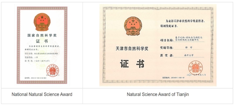 In addition to the well-developed testing centers of the collage, the center is also equipped with advanced instruments and facilities for research. Since founded at 2015, these researchers in this center have published more than 250 papers in many famous academic journals, such as Nat. Commun., J. Am. Chem. Soc., Angew. Chem. Int. Ed., Adv. Mater., Chem. Mater., Chem. Commun., J. Mater. Chem. , and so on. Remarkably, part of these achievements has contributed to the wining of National Natural Science Award (Second prize, 2014) and the Natural Science Award of Tianjin (Grand prize, 2018).