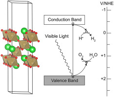 Photocatalytic water splitting is a promising route to achieve renewable hydrogen production. In this work, a series of A5B4O15 (A=Ca, Sr, Ba; B=V, Nb, Ta) layered perovskite materials, were investigated through density functional theory computations. We revealed that changing B ions can modify the band gap, and A-ion substitution can tune the band-edge position. Therefore, through A/B ion combination, we can realize the band engineering of A5B4O15 materials. Electron/hole effective mass and water adsorption of A5B4O15 materials were also explored. Further investigations suggest that Ca5V4O15 nanosheet, with an appropriate band gap and an optimal band-edge position, would be a promising photocatalyst for visible-light water splitting.