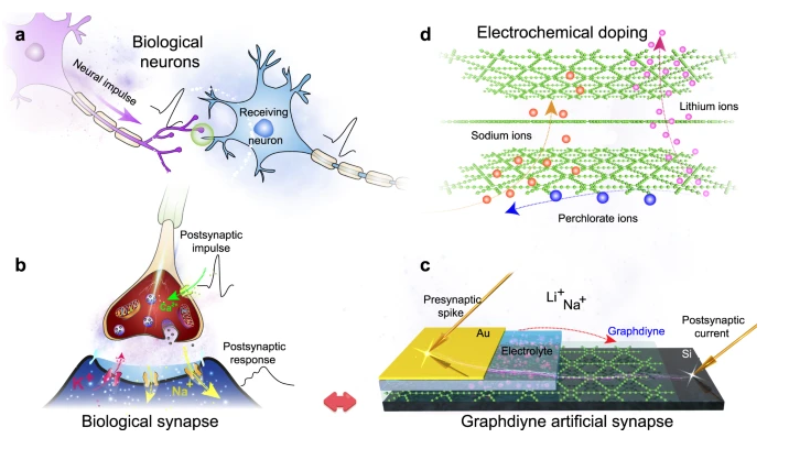 论文题目:Mimicking efferent nerves using a graphdiyne-based artificial synapse with multiple ion diffusion dynamics