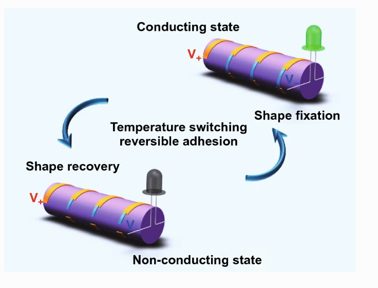 论文题目:Highly Stretchable Shape Memory Self-Soldering Conductive Tape with Reversible Adhesion Switched by Temperature