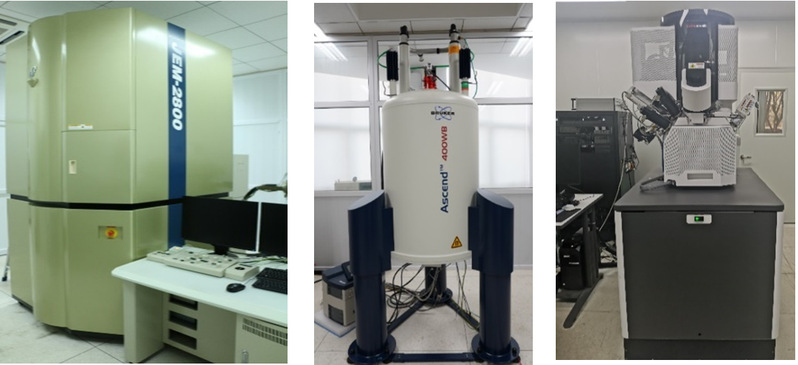 The center contains a range of large-scale precision analytical instruments, including a field-emission transmission electron microscope (FETEM), a field-emission scanning electron microscope (FESEM), an X-ray photoelectron spectrometer (XPS), a solid-state nuclear magnetic resonance spectrometer (SSNMR),a physical property measurement system (PPMS),afocused ion beam electron beam dual beam microscope, an X-ray diffractometer (XRD), a confocal microscope/raman spectrometer (Raman), a single crystal X-ray diffractometer (SXRD), an elemental analyzer (EA), a magnetic property measurement system (MPMS), and a thermal analysis – infrared system.